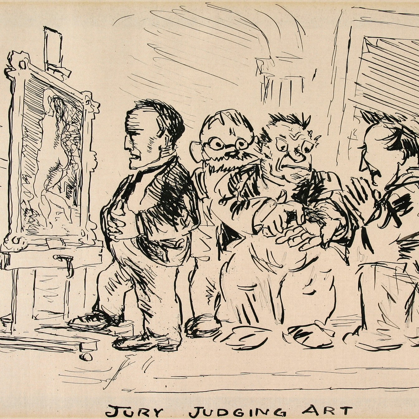 Robert Henri (American, 1865 – 1929), Jury Judging Art, circa 1908 (detail), Pen and ink on paper, 5 5/8 x 8 3/4 in. (14.3 x 22.2cm), Gift of Mr. Ronald French, 84.81, Public domain