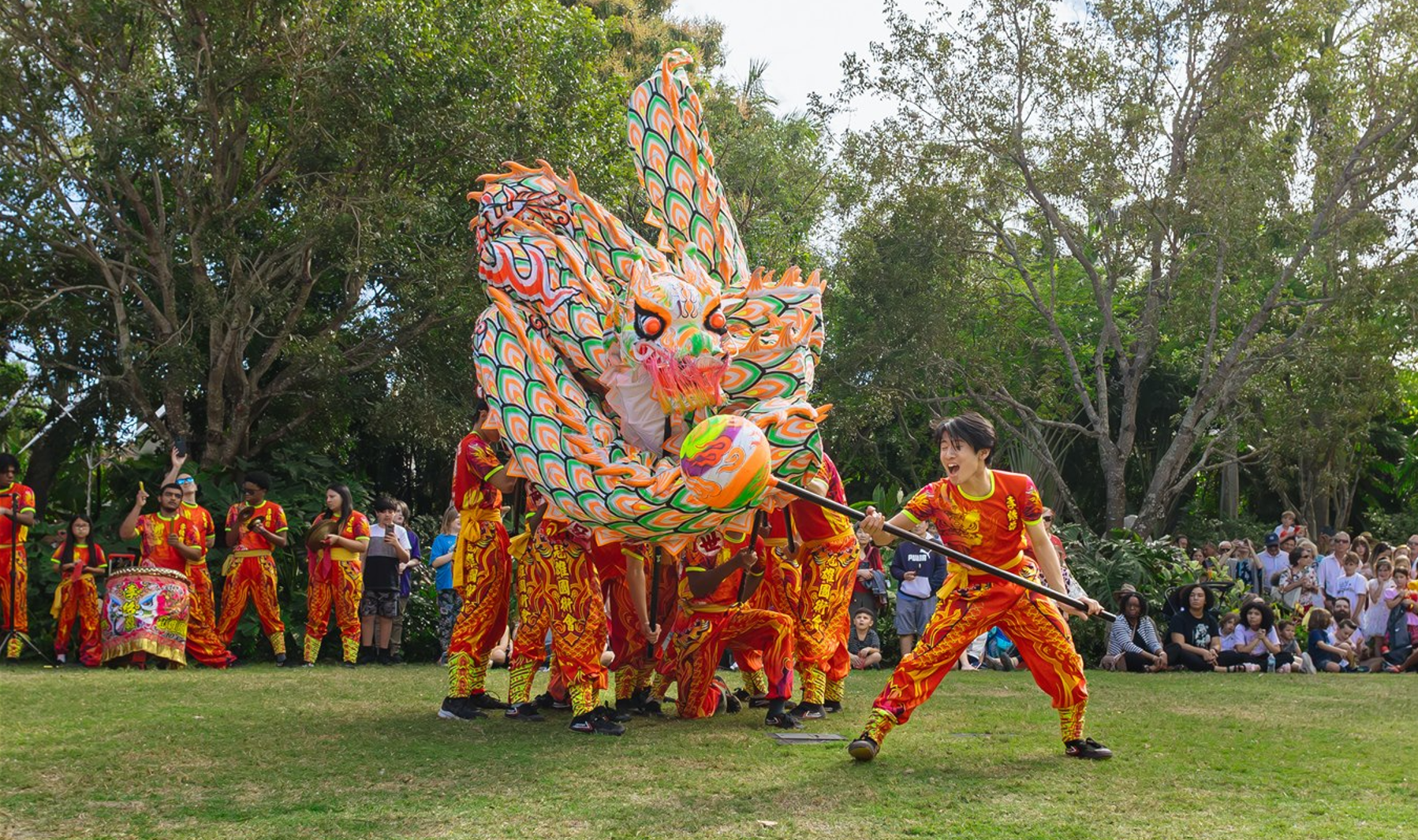 Enjoy a traditional Dragon and Lion Dance featuring the Lee Koon Hung Choy Lay Fut Kung Fu Association.