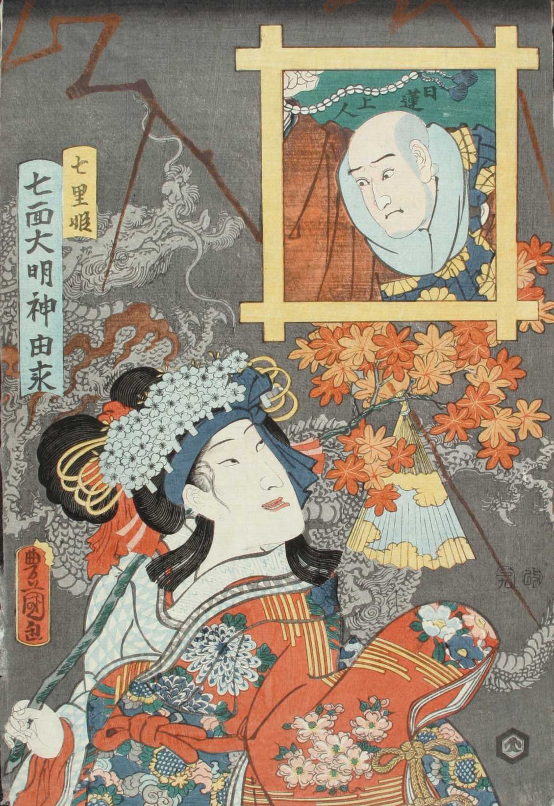 Utagawa Kunisada (Japanese, 1786-1864), Kabuki Actors Nakamura Fukusuke I as Princess Shichiri and Ichikawa Danzō VI as Saint Nichiren, 1857