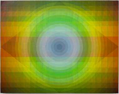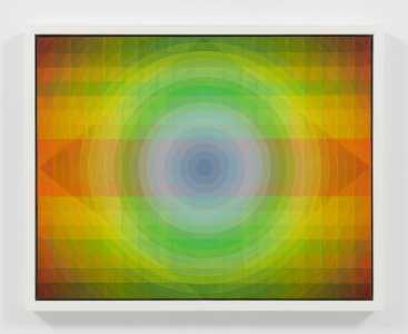 Green Flash, 2025, was created for the Norton Gala as a part of Gibson’s body of work from his first solo show with Hauser & Wirth, Paris in 2025. Known for his use of vibrant colors and references to art from his own Native American heritage, Gibson’s bold chromatic sensibility and emphasis on pattern and abstraction are clear. This work also highlights his use of color studies and the concept of “psycho-prismatic” — how color, light, and prisms combine to allow us to see multiple things at once. Gibson was the American representative to the Venice Biennale in 2024.
