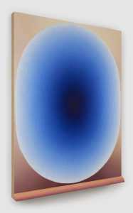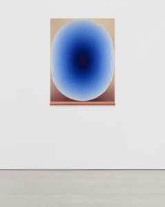 Loie Hollowell (born, 1983, raised in Woodland, California) is recognized for her paintings that evoke bodily landscapes, using geometric shapes to move a figure or its actions into abstraction. Her work explores themes of sexuality, often through allusions to the human form with an emphasis on women’s bodies. An investigation of autobiography became evident in Hollowell’s early work, which explored the use of gradient staining techniques on cotton supports as a metaphor for intimate spaces — meditations on sleep and bodily fluids. These canvases evolved into figurative painting, introducing female nudes as subject matter as well as the use of reflection and mirroring. Her subsequent work exhibited a shift toward abstraction, characterized by radiating silhouettes and a pulsating color palette. With its strong colors, varied textures, and geometrical symmetry, Hollowell’s practice is situated in lineage with the work of the Transcendental Painting Group, 1938 – 1941, Georgia O’Keeffe, Gulam Rasool Santosh, and Judy Chicago.